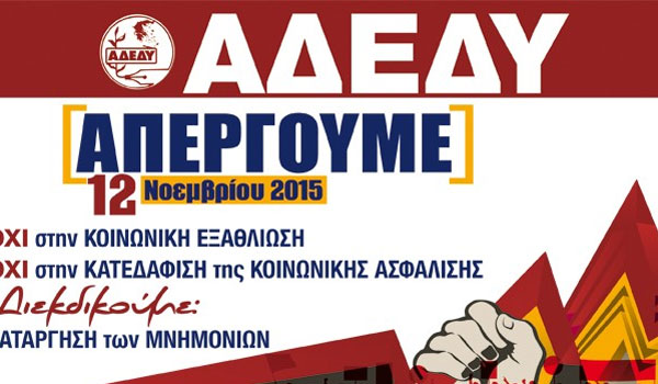 Οι εργαζόμενοι στο Δημόσιο, συμμετέχουμε στη Γενική Απεργία στις 12 Νοέμβρη 2015 και διεκδικούμε: